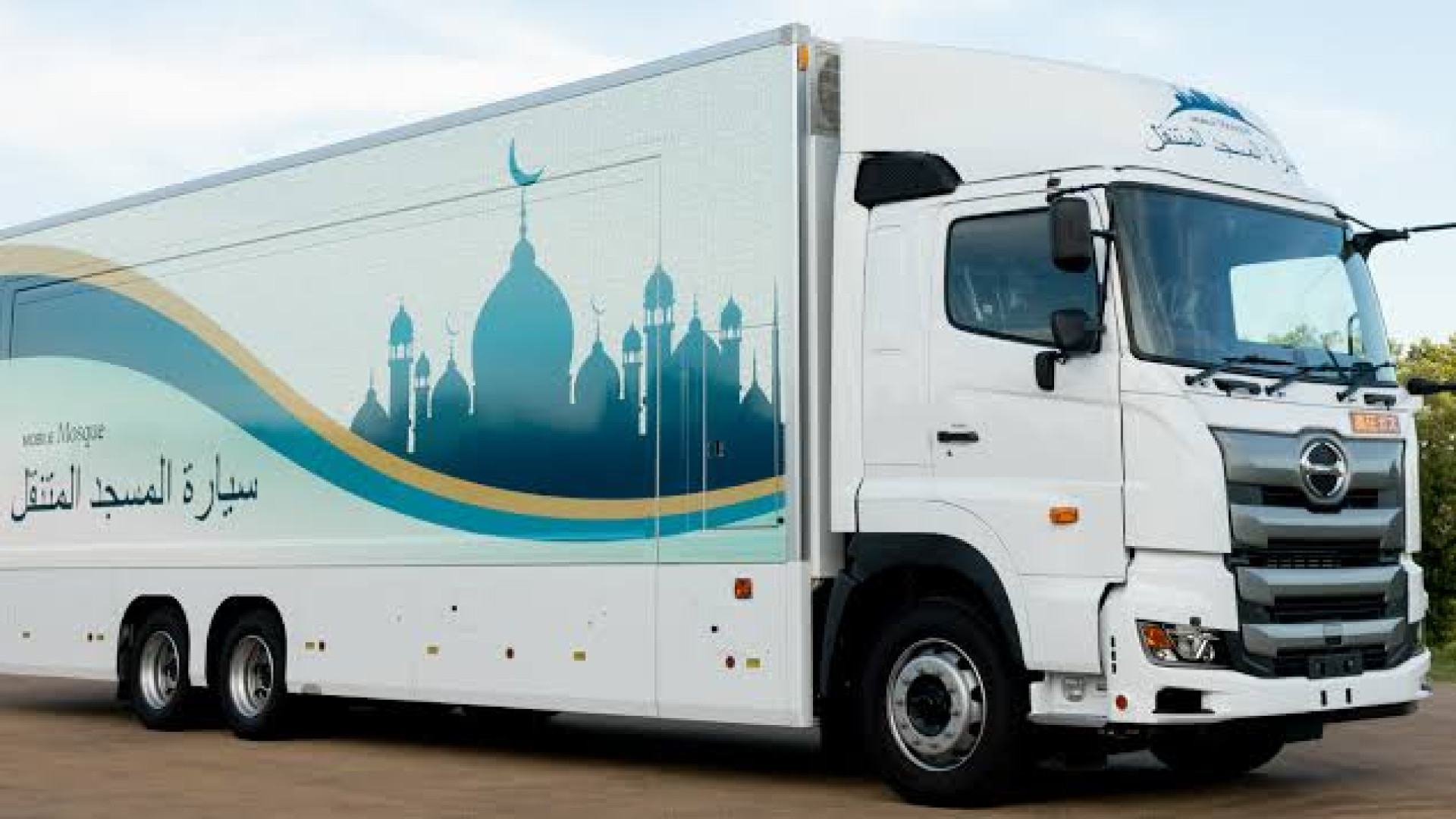 La Mezquita Móvil fue desarrollada por Yasu Project Co., Ltd. utilizando la plataforma de carga de un camión grande como base. Está diseñada para ofrecer un espacio de oración en zonas afectadas por guerras, desastres o con falta de infraestructura religiosa.